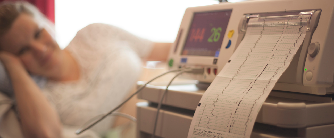 Mit dem CTG (Cardiotokographie) kann man die Herztöne des Kindes im Bauch sowie Wehen überwachen und aufzeichnen.